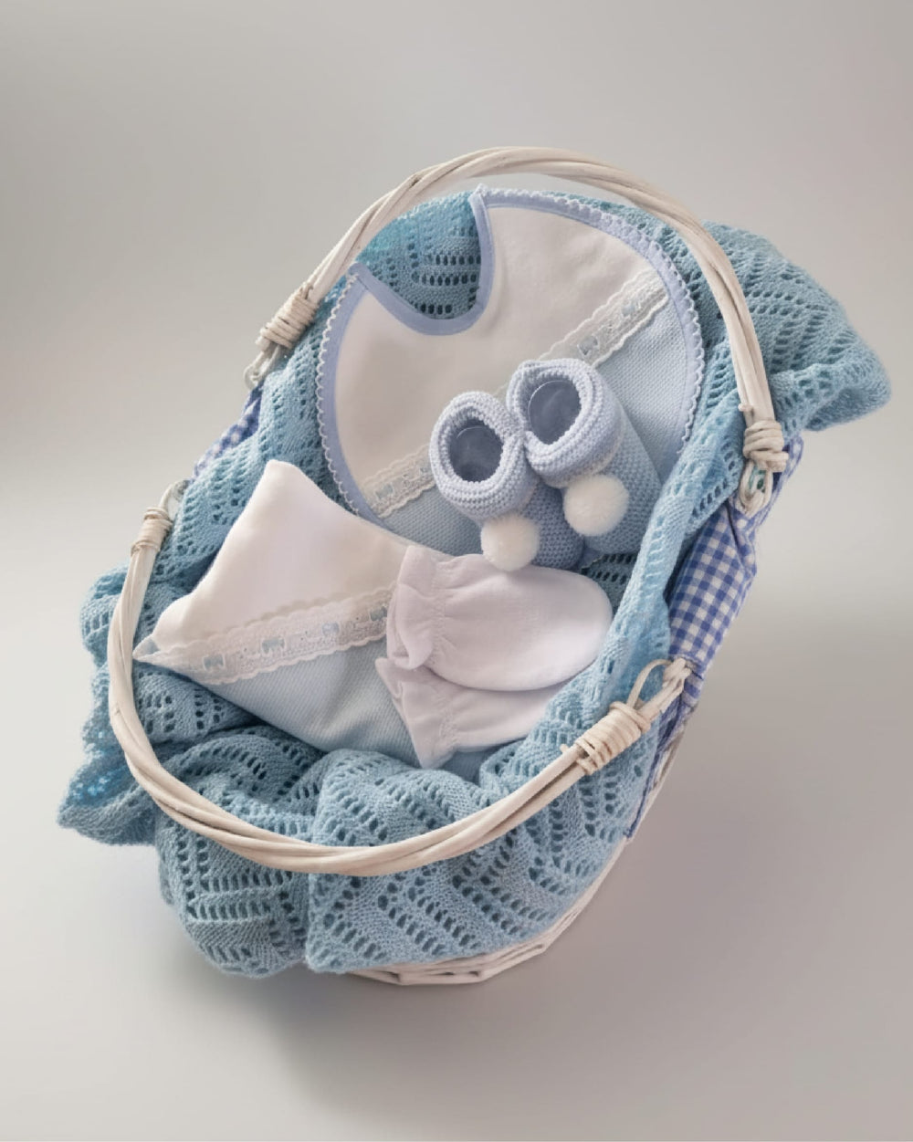 Indulge in luxury with this exquisite baby gift set hamper, perfect for both boys and girls aged 0-3 months. Made from high-quality wool in the United Kingdom, this gift basket includes a collection of fine items in a soothing baby tones.