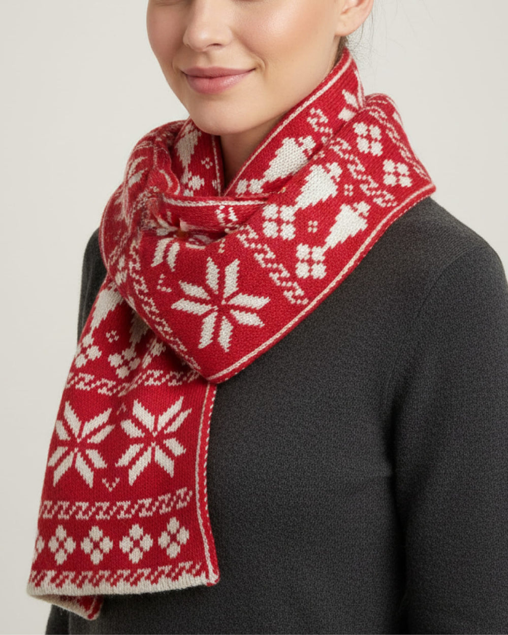 House of Nairn Christmas Scarf is a festive and stylish accessory for both men and women. Made from 100% wool in a traditional red & White colour, this knitted scarf is perfect for spreading Christmas cheer.